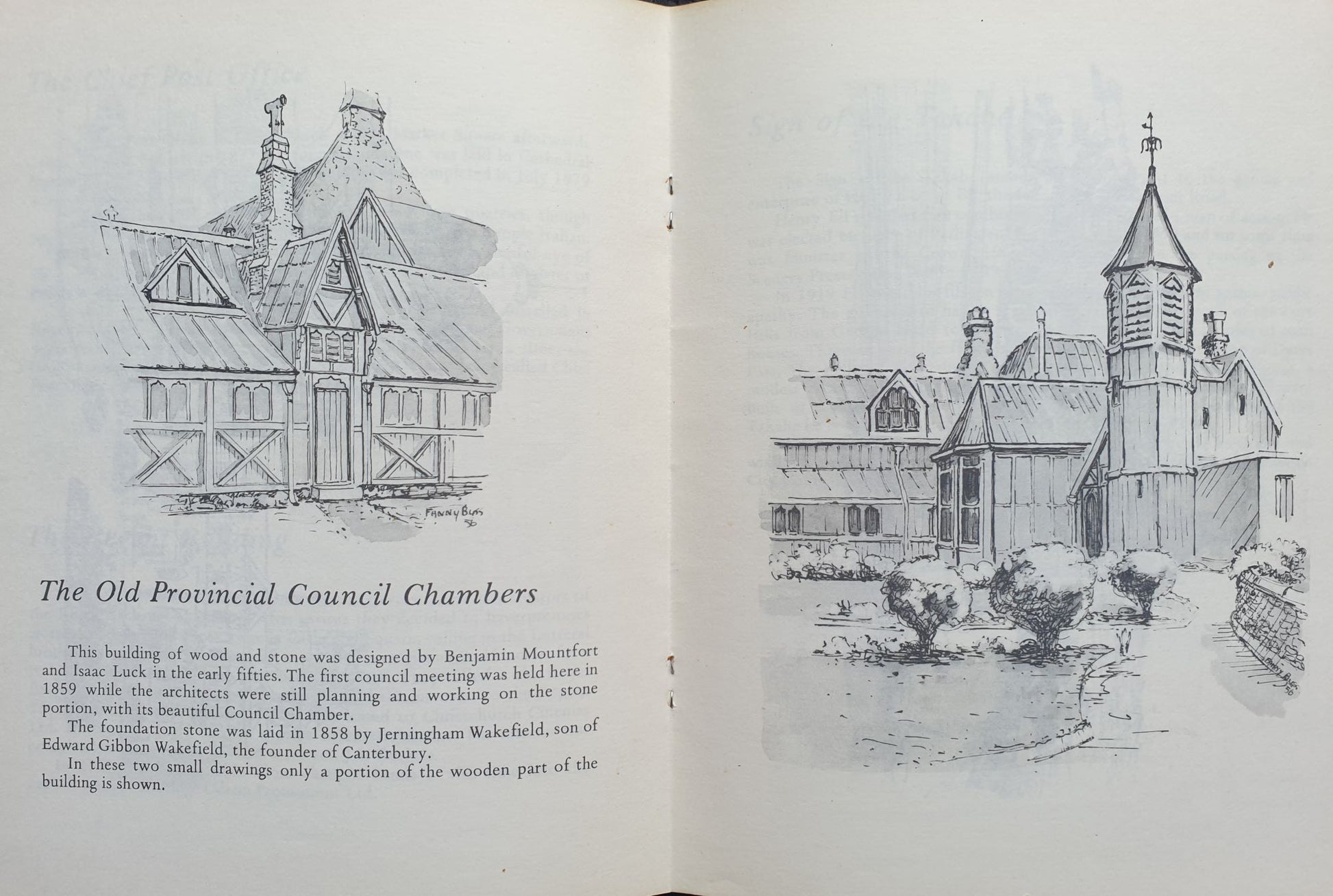 Soft cover booklet with beautiful pencil sketches and short descriptions of notable Christchurch buildings of the time.